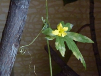 平成21年11月台風一過の翌朝、抜けるような青空に鼻歌交じりに洗濯物を干しながら、ふと見ると空中にきらきら光る一本の線。 しなやかなものは固いものに勝つ。 |