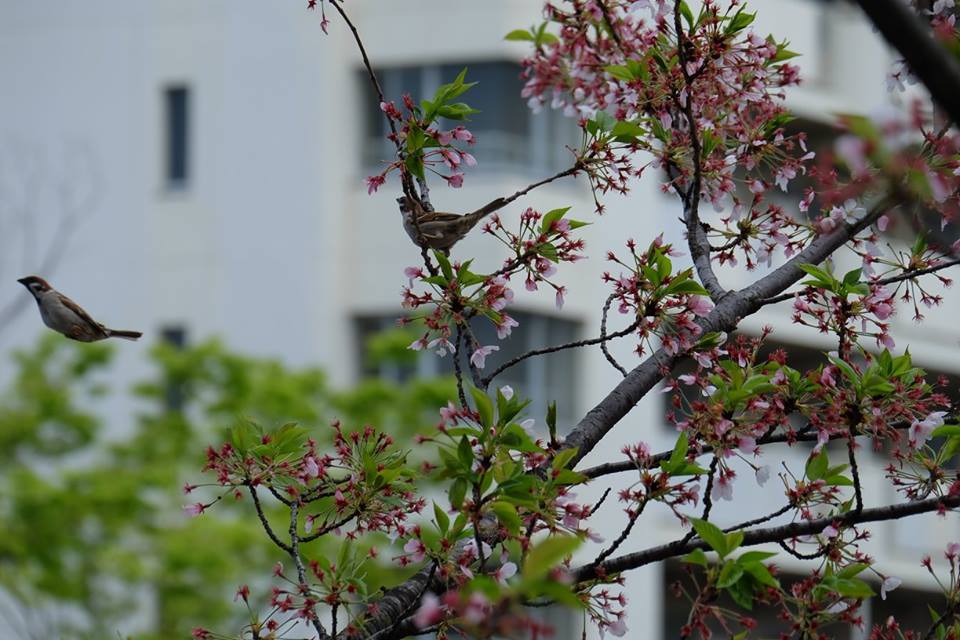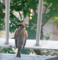 22年7月 雨に濡れそぼったスズメがベランダの中に入って雨宿り。器用に羽根を広げ、丁寧に櫛けずるように、くちばしですいています。大きく広げた羽根が透けてとてもきれい。ちょっと小ぶりな、この子はこの前巣立っていったあの子かしら、と思ってしまいました。 今年も、緑が濃くなった。 |