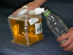 ハジーバッグは重い容器を持ち上げなくても、袋の上を押さえると中身が出てきますからラクラク!ペットボトル等に小分けして使うと便利です。